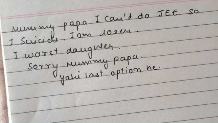 Handwriting Reveals Suicidal Tendencies in a Recent Suicide Case of an 18-Year-Old Student in Kota