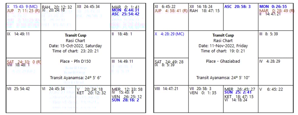 A closer look revealed a significant shift in the Sun’s position. In a few days, it would move into Libra, where it becomes debilitated and encounters its arch-rival, Ketu. This forward motion of the Sun hinted at a tangible threat involving enmity or harm. I predicted that within the next 30 days, the querist might face a real danger and advised him to exercise caution.